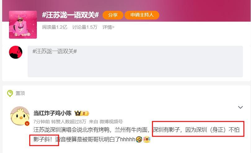 汪蘇瀧這樣做值得嗎?有網友批評他斷人財路。從現實看,汪蘇瀧始終堅持自己的立場。7月25日晚,他在深圳開演唱會,現場他演唱了《年輪》,還說出了“深圳(身正)不怕影子斜”的諧音梗。