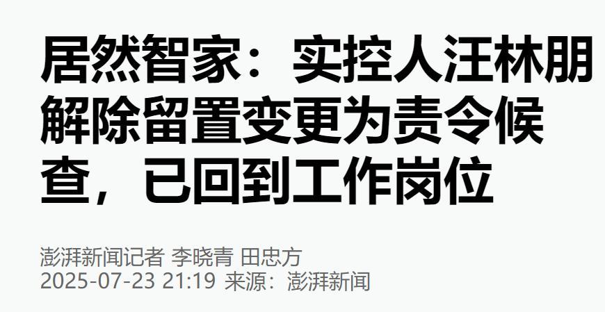 值得一提的是3天前,居然之家發佈公告稱汪林朋的留置措施已被解除,已經變更爲“責令候查”,汪林朋已回到工作崗位正常履職。