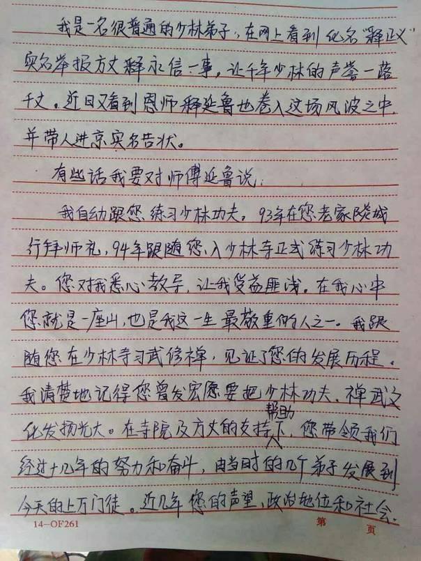 沒過多久,釋永信的徒弟釋延魯到北京實名舉報釋永信。