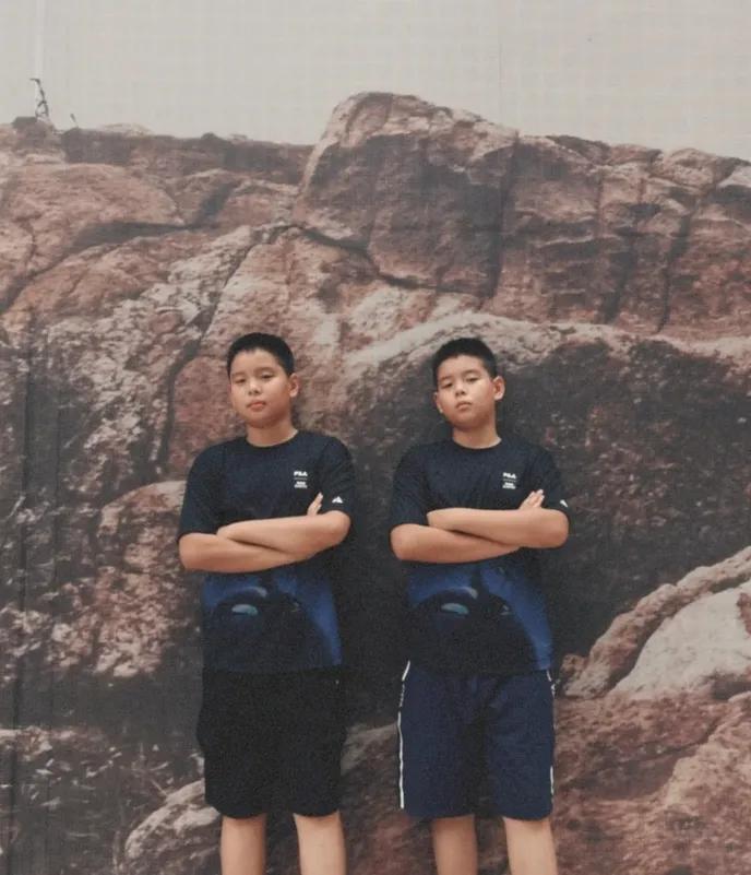 他們的一對雙胞胎兒子,都長得特別高了,一個個都變成小夥子大帥哥了。