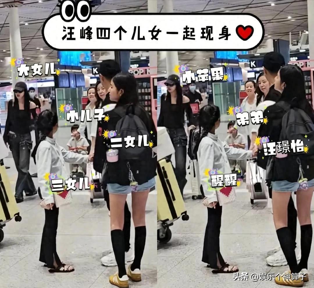 好幸福!汪峯一家五口返程回家,二女兒罕見露面,小蘋果又美又颯