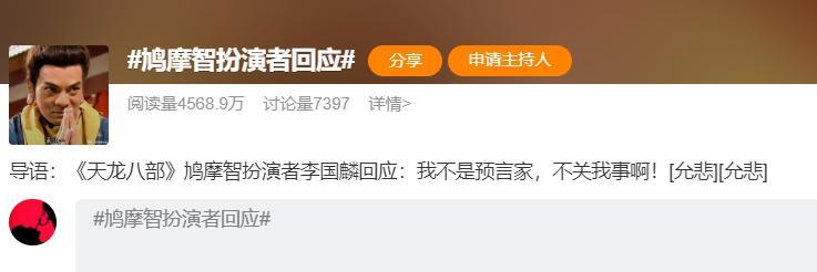 得知此消息後,在深夜李國麟配合網友玩梗,在社交賬號發文:我不是預言家,不關我事啊。並配上了他在《天龍八部》中的劇照。