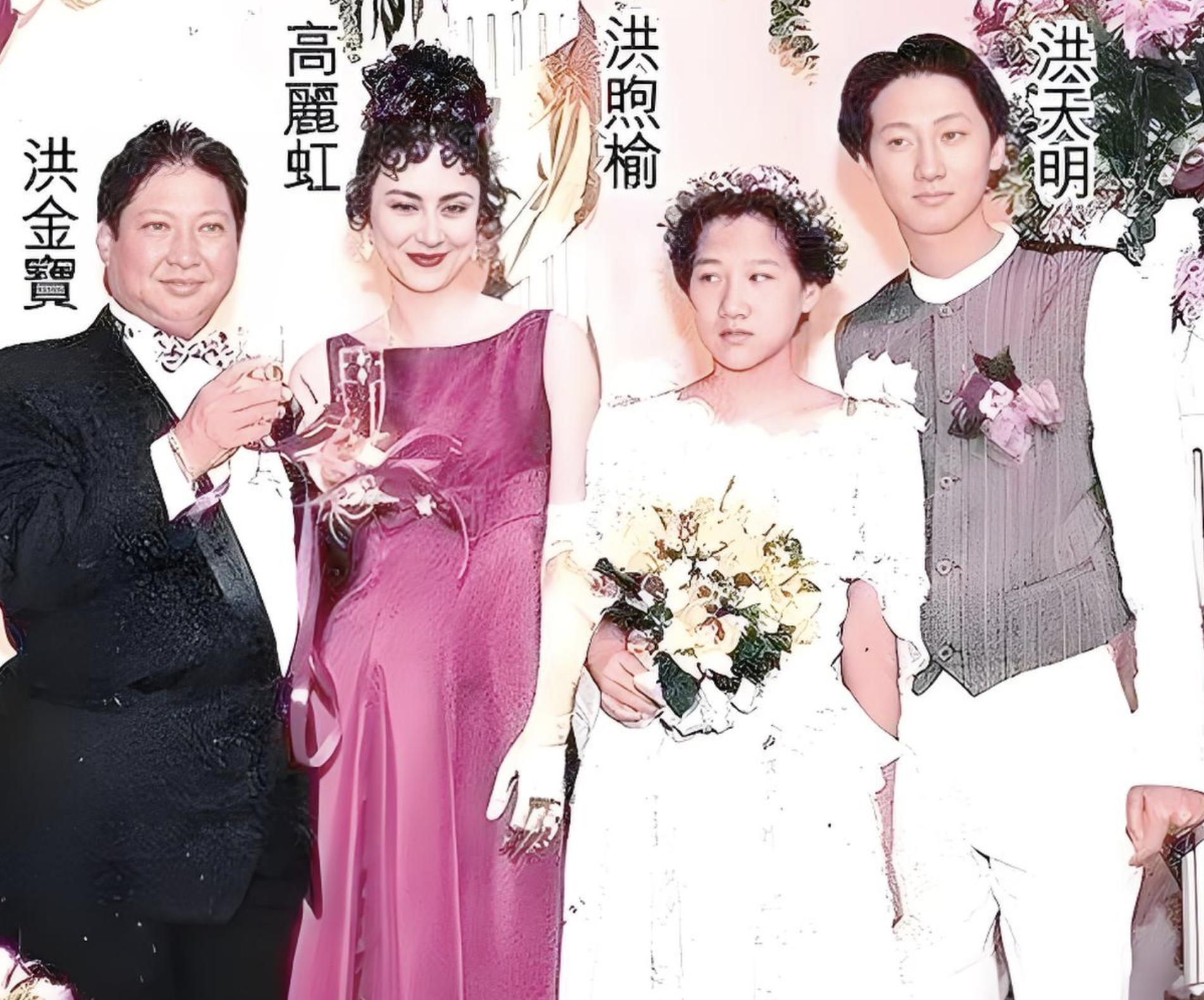 在洪天明婚禮上,曹恩玉與高麗虹一左一右,站在洪金寶身邊。