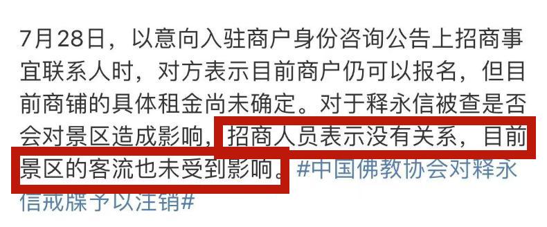 對於此,與少林寺相關招商工作人員透露少林寺的客流並沒有受到釋永信事件影響。