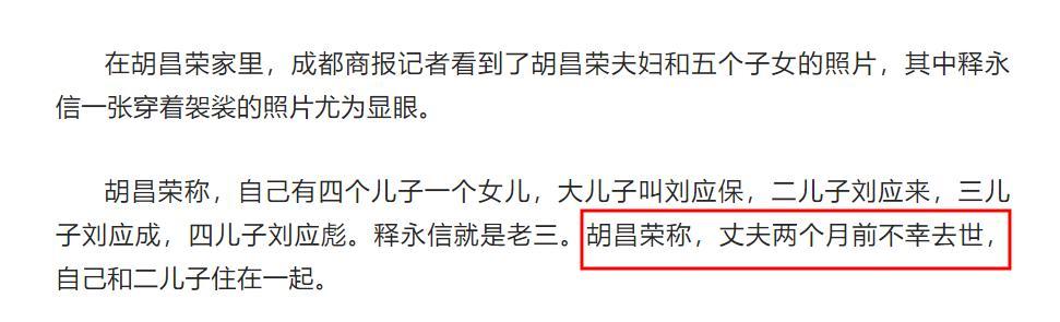 對於此,胡昌榮接受媒體時直言釋永信是出家人,沒有妻女,而且還強調釋永信十多歲就出家了,出家前也沒有娶親。