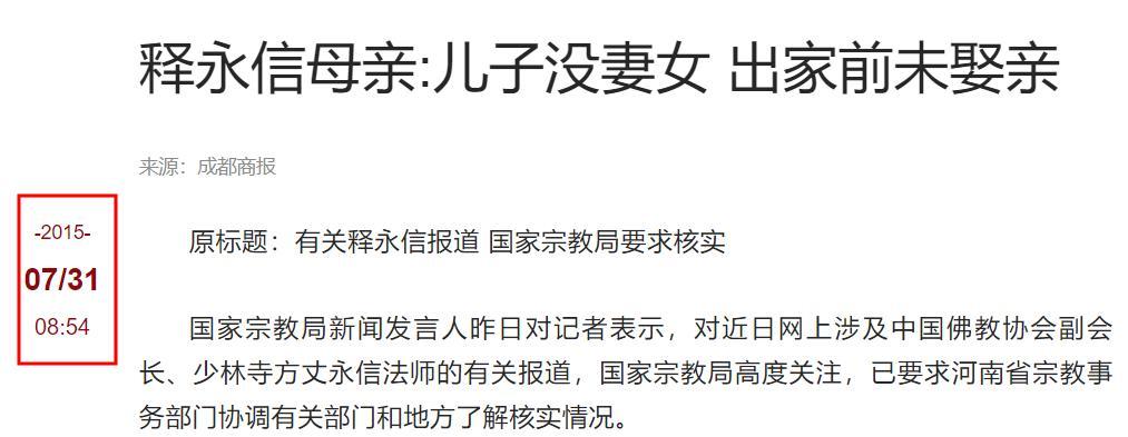 最終釋永信私生女事件經過2年的調查,2017年真相大白。
