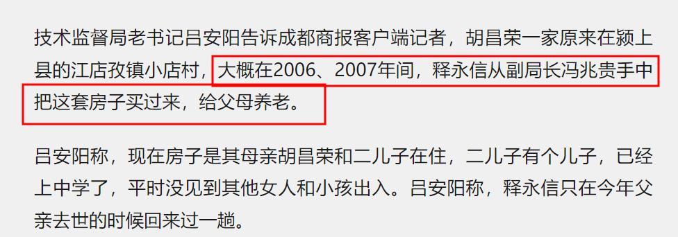 值得一提的是,胡昌榮和二兒子一家所住的房子由釋永信所買。