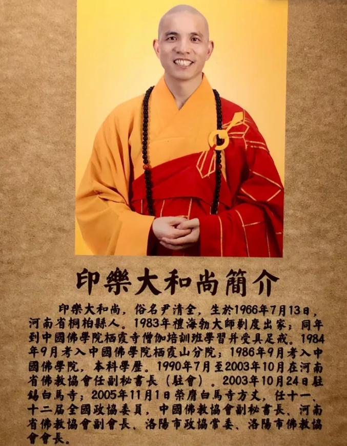 根據公開資料可知,印樂法師俗名尹清泉,1966年出生於河南桐柏。
