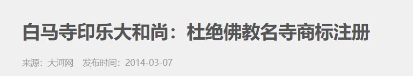 印樂法師發現白馬寺被作爲商標在不同領域被註冊,先後有15家,涉及食品、藥品、服裝、酒類等領域。