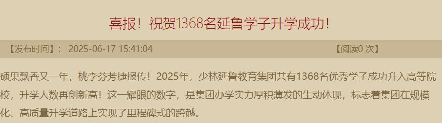 就在今年,少林延魯教育集團再創佳績,今年有1368名學生成功升入了高等院校,升學人數再創新高。