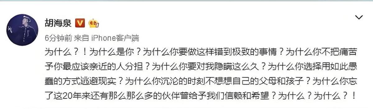因爲有了“明星塌房”,大衆才知道胡海泉不是一個普通的歌手。