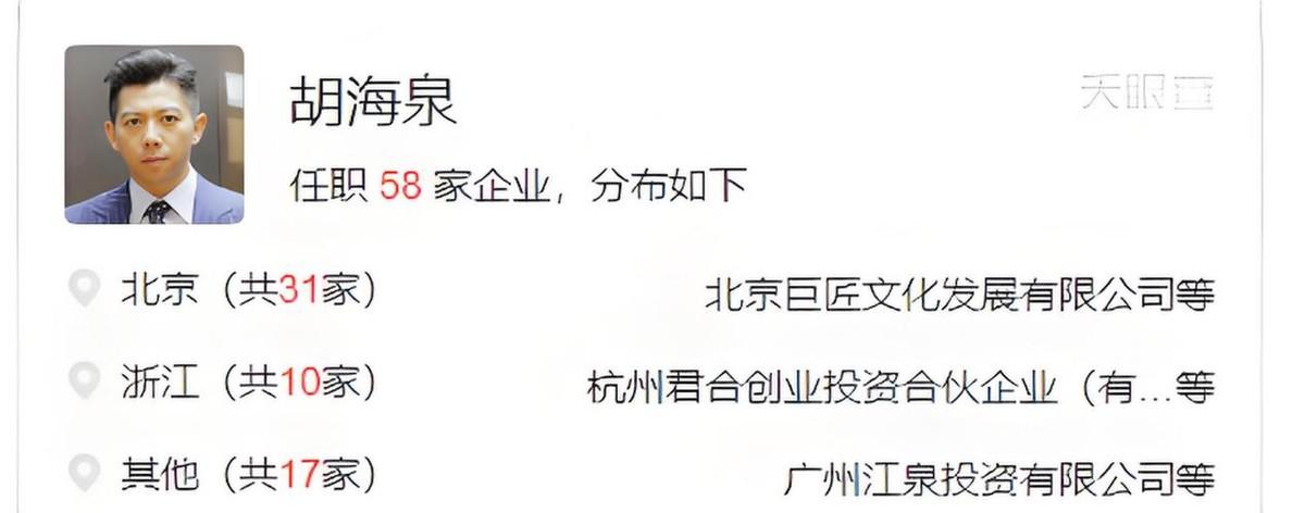 千萬不要以爲胡海泉只是投資娛樂行業,他擁有多家公司,涉及各行各業。