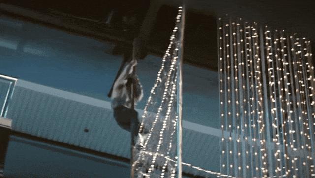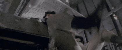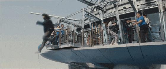 最經典的就是兩場動作戲,一個是陽臺跳躍。