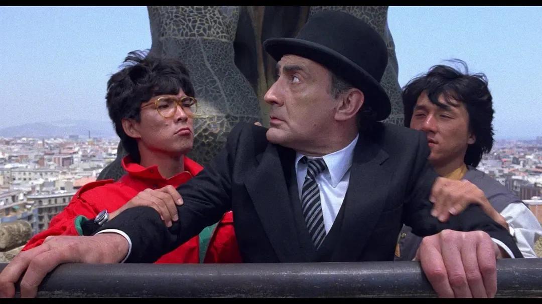 當他們在巴塞羅那的街頭追着小偷跑,洪金寶邊喘邊罵 “死胖子別跑”,元彪用傘尖勾住壞人領口,成龍翻着跟頭從車頂飛過。