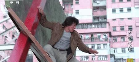 成龍從十幾米高的鐘樓指針上,沒有任何保護措施,直接摔穿兩層雨篷落地,開啓成龍搏命演出的先河。