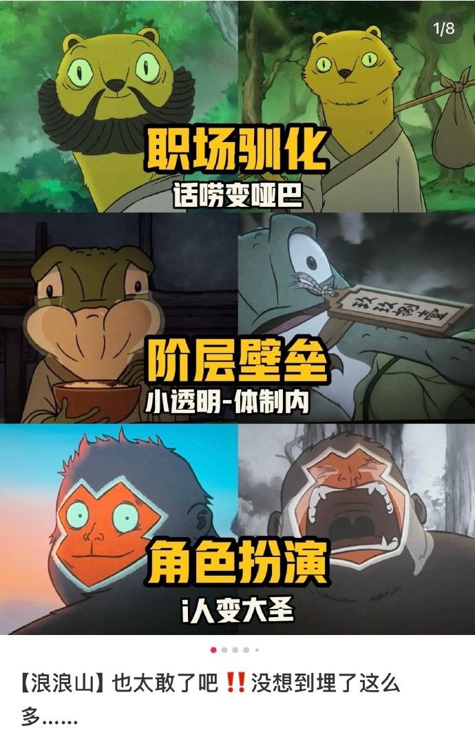 4、身份認同困境:社恐猩猩怪從結巴到高喊“齊天大聖”的蛻變,揭示內向者突破心理壁壘的成長陣痛;黃鼠狼精從話癆到沉默的轉變,則隱喻職場新人經歷理想幻滅後的現實馴化。