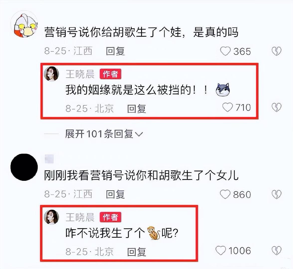 王曉晨的這個回覆讓網友琢磨不透,有網友認爲“我頭昏了”是“我頭婚了”的意思,紛紛留言恭喜她。有網友認爲“我頭昏了”,是“我昏了”的意思,否認結婚。