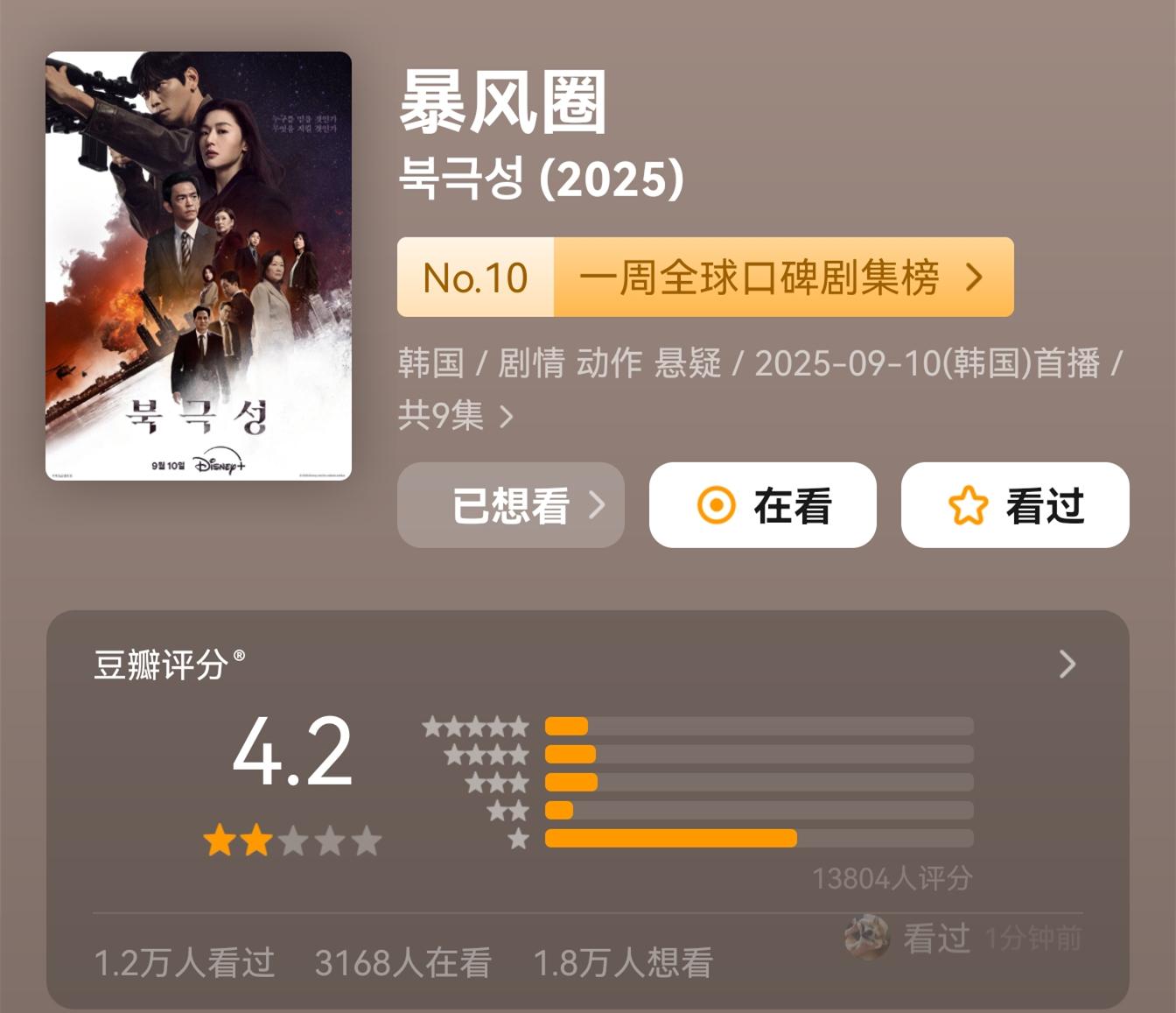 但隨着劇情的推進,中國觀衆憤怒了,紛紛湧入豆瓣,再次打分,目前該劇評分已經下降到4.2分。
