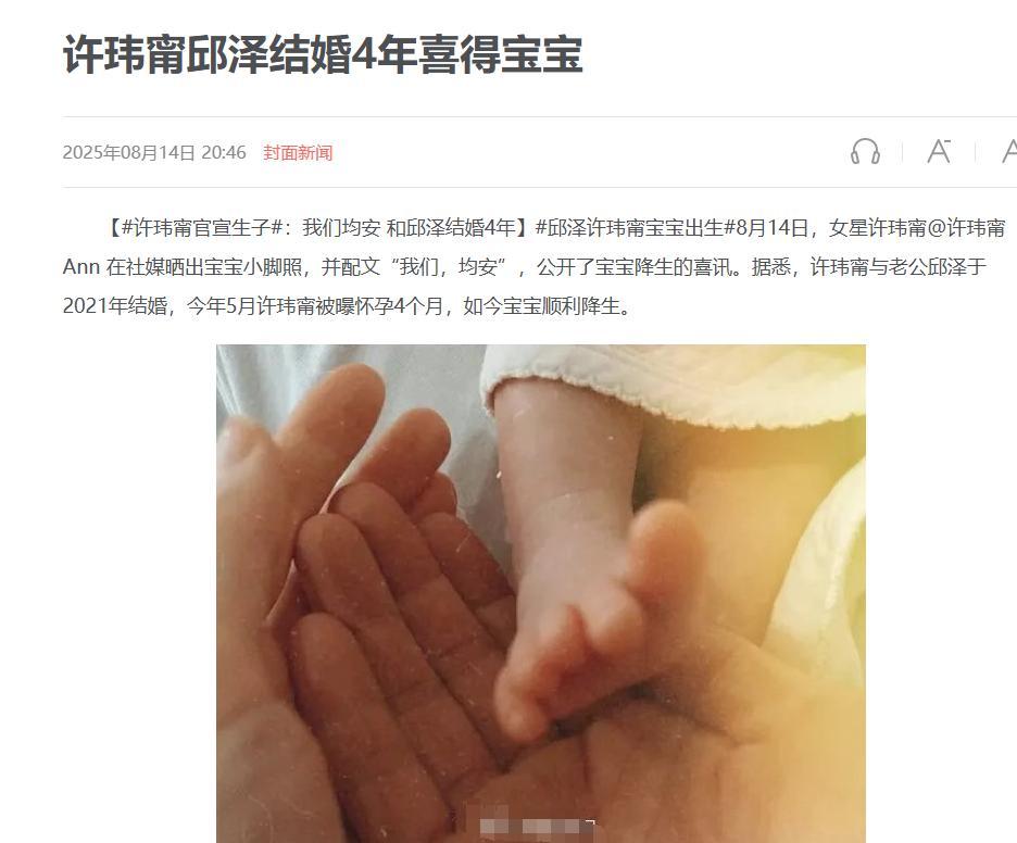今年8月14日,許瑋甯官宣了生子的喜訊(7月出生),他們一家升級成爲了幸福的三口之家。