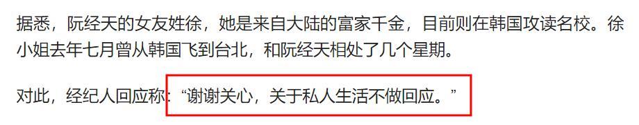 只不過面對新戀情登上熱搜,阮經天本人並未做出回應,反而是他的經紀人回應了。