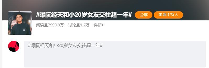 阮經天新戀情消息曝光後,很快就登上了熱搜第一,引發網友熱議。