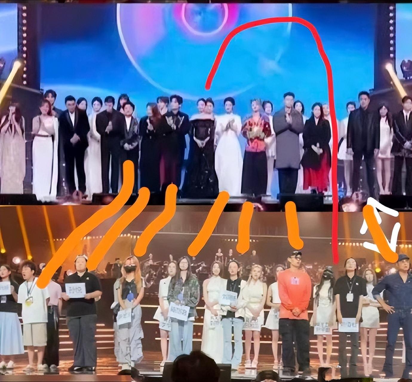 衆所周知,這樣的羣星演唱都有排位,誰站在什麼位置都很有講究。毋庸置疑的是資歷深的、咖位大的都會在C位。