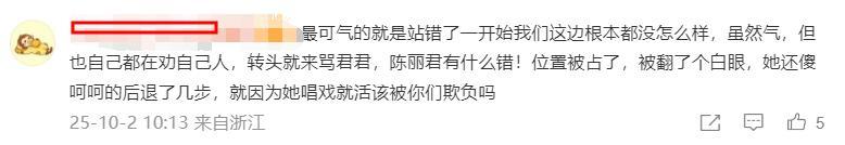 在這件事情中,陳麗君明明因爲劉惜君的走位受到影響,她一句話也沒說,結果被劉惜君的粉絲要求道歉,實在太魔幻。
