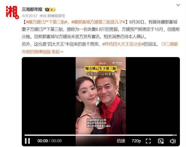 大烏龍!港媒曝方媛三胎已生子,60歲郭富城再當爸,方媛發文否認