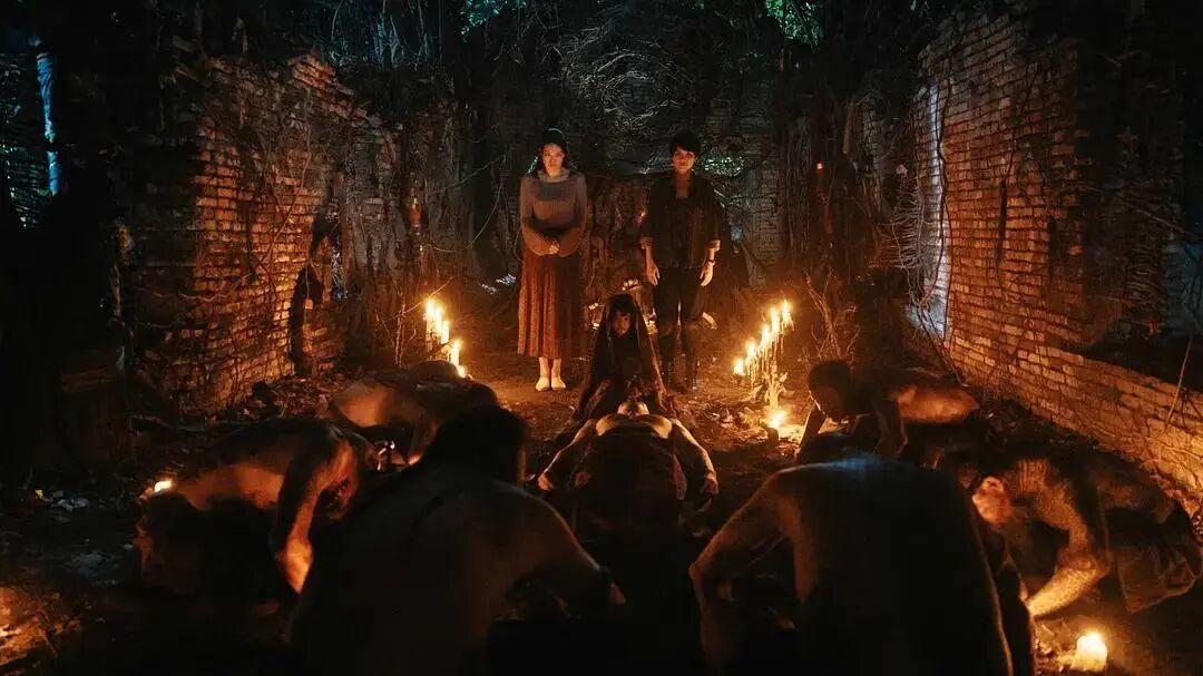 緊接着一個女孩從黑暗中現身,走到屍體頭頂吹了一口氣,下一秒死去的猴子就復活了。