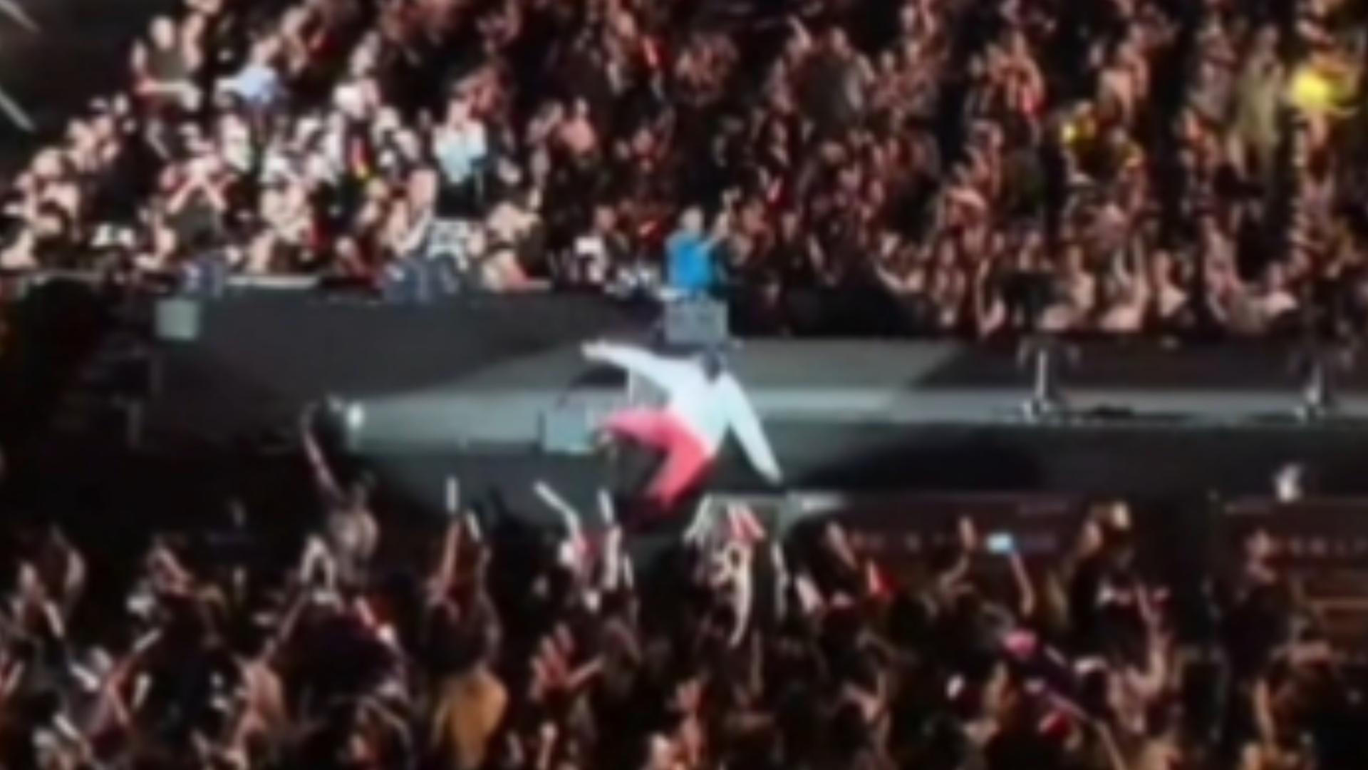 看到這一幕,現場歌迷都嚇壞了,從視頻中可以清晰地聽到現場歌迷的尖叫聲。
