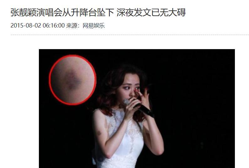 2015年,張靚穎在北京開演唱會時,在演唱歌曲《BangBang》時,也從舞臺上跌落了。
