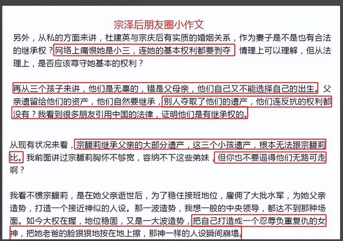 不難看出,宗澤後的這篇長文還是以批評宗馥莉爲主,並且試圖削弱宗馥莉在娃哈哈的影響力。