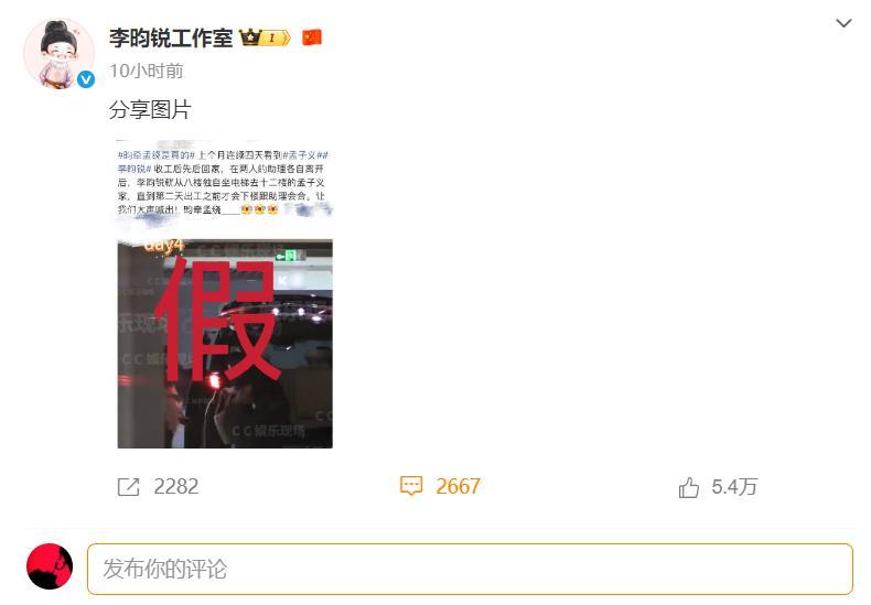 有網友說孟子義和李昀銳更好磕了,闢謠方式都一模一樣,肯定是兩人在一起商量才這麼回應的。