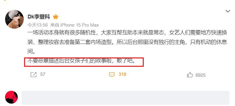他希望某些人不要惡意描述後臺女孩子的故事,讓大家都散了吧。
