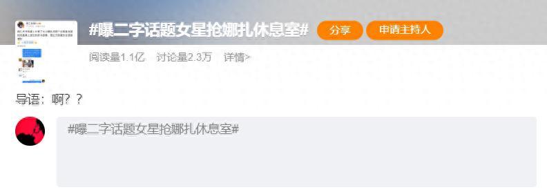 狗仔曝某位二字話題女星搶娜扎休息室,二字話題女星的身份引發猜測。