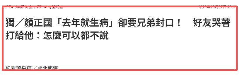 據瞭解,在2024年的時候,顏國正的健康情況就很糟糕,他當時讓朋友爲他保密,不要向外界透露。