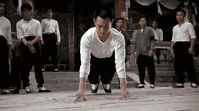 還有陳真在精武門日常的教學與訓練,也展示了更爲科學的訓練方法,還用單手三指俯臥撐、單手引體向上、跳繩、跑步和側踢展示,向李小龍全面致敬。