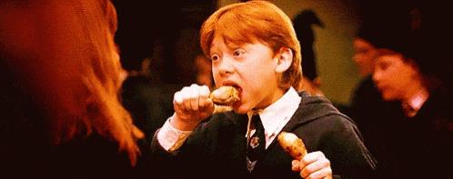 電影中羅恩總是以呆萌的形象出現,有誰會不喜歡拿雞腿的小羅恩呢。