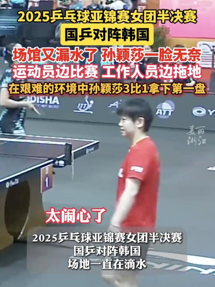 比如孫穎莎比賽時,場館竟然漏水了。
