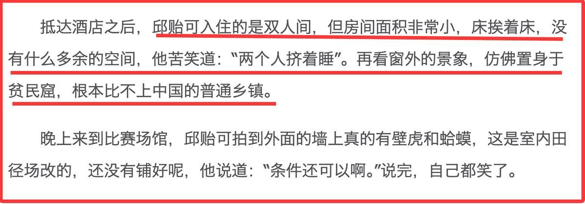 但國乒運動員在印度住的雙牀房就不一般了,不僅房間小,連兩張牀都是緊緊挨在一起,國乒運動員只能擠在一起睡。