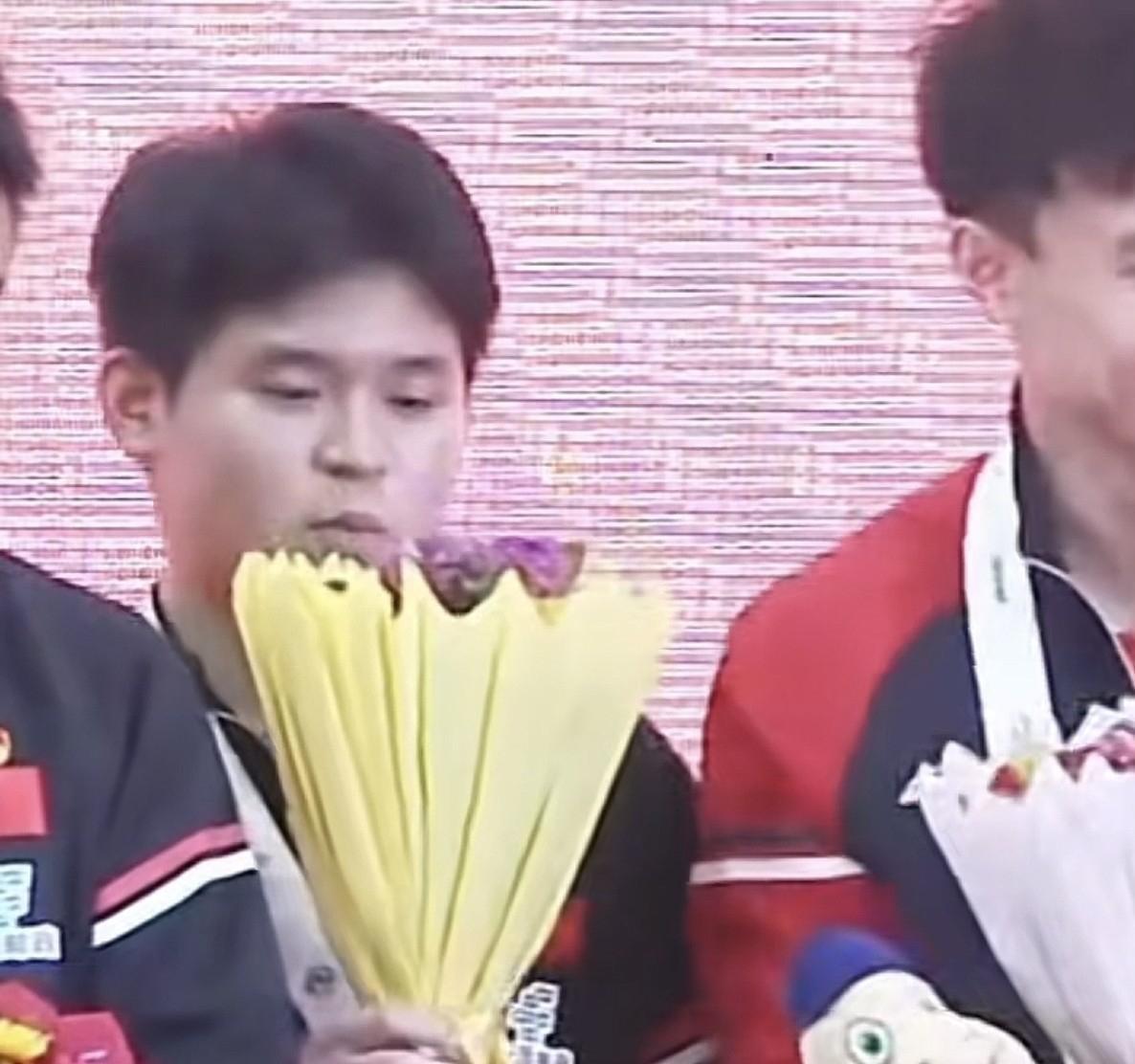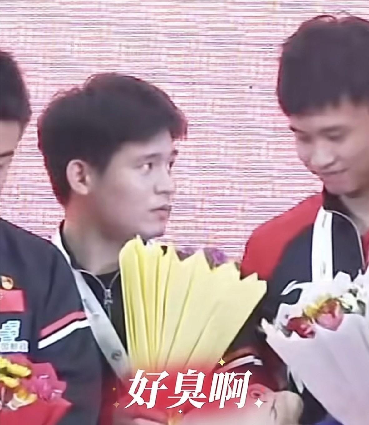 但這還沒結束,林詩棟的好奇心太大了,他又去聞了聞吉祥物,他再次被臭到表情失控。