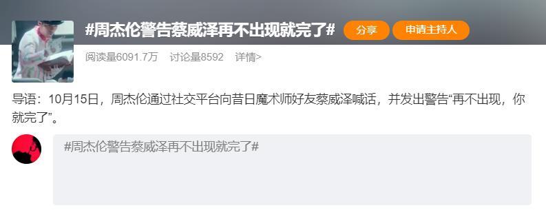 10月17日,周杰倫喊話昔日好友蔡威澤的事情登上了熱搜。