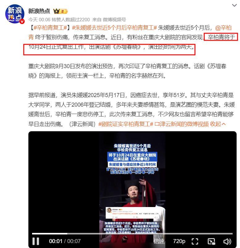 這也就是說辛柏青依舊暫停工作,依舊沉浸在喪妻之痛中。