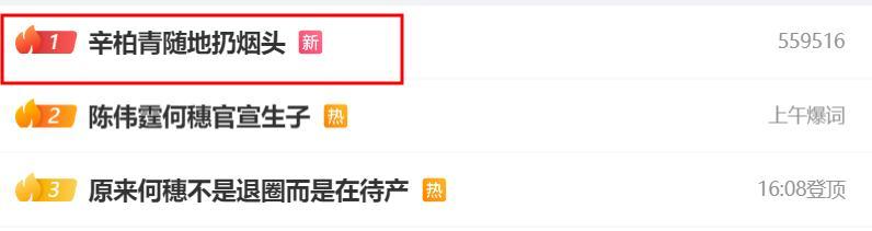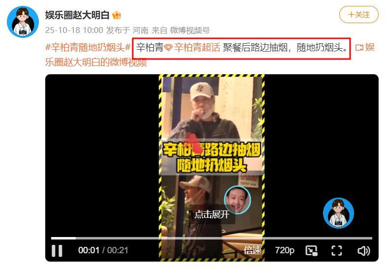 狗仔發佈了一條有關辛柏青的視頻,在文案中寫道“辛柏青聚餐後,隨地扔菸頭”。
