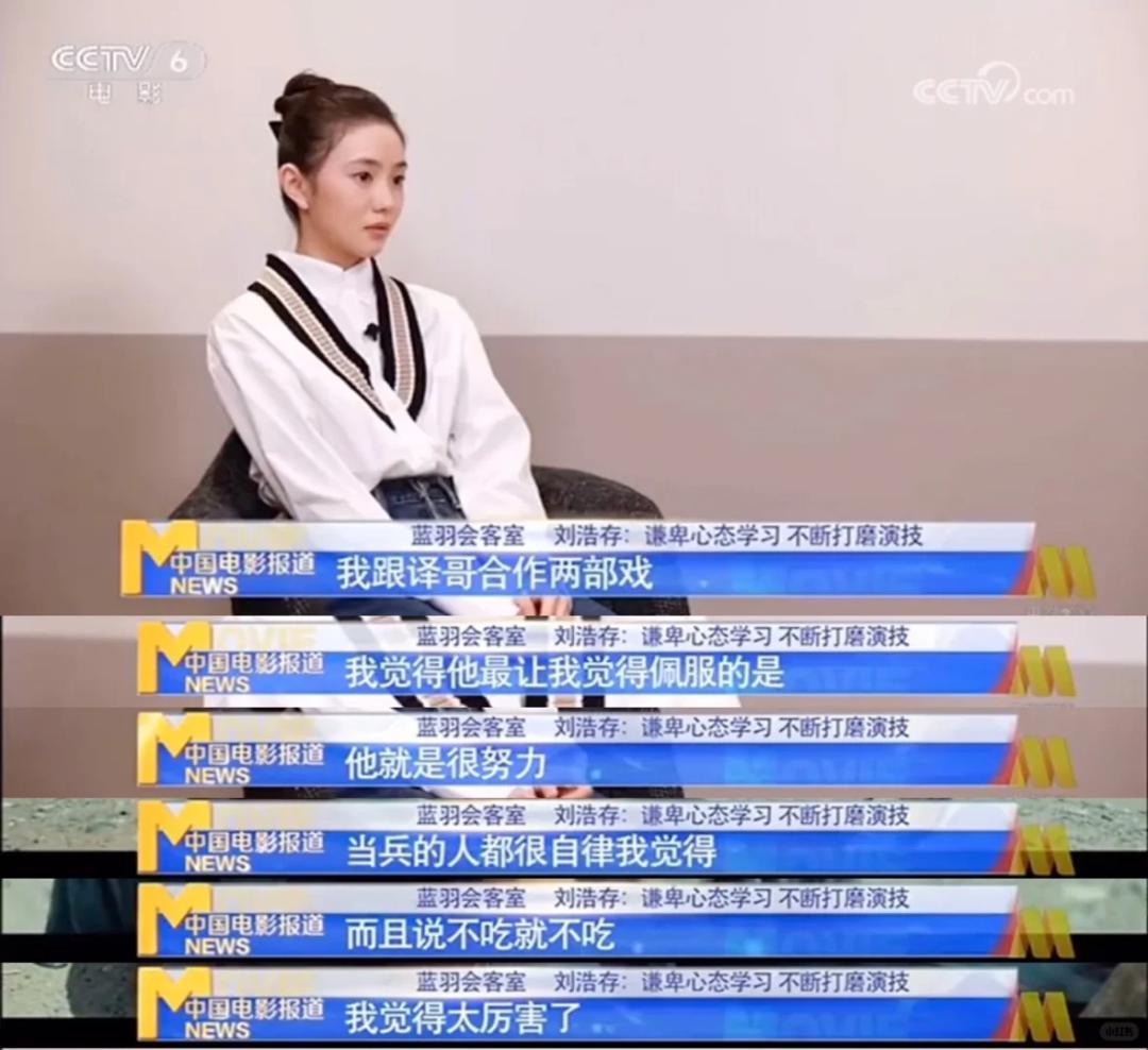 2022年,韓寒電影《四海》宣傳期間,作爲主創的劉浩存登上電影頻道,與主持人藍羽面對面交流。
