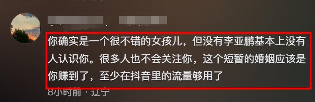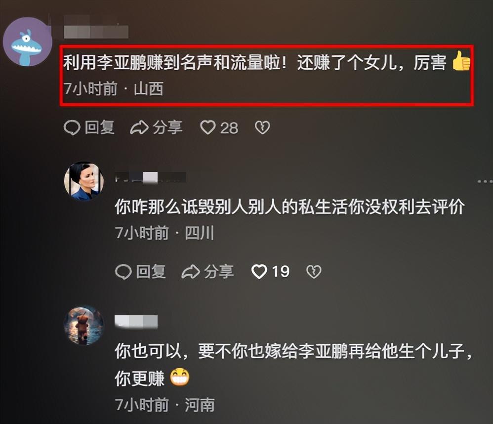 有網友說海哈金喜利用李亞鵬賺到了名聲、流量,還有一個女兒。