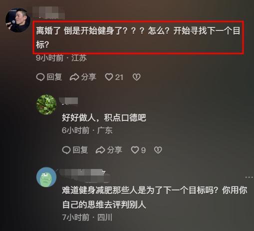 有網友陰陽怪氣地說海哈金喜離婚就健身,是爲了尋找下一個目標。