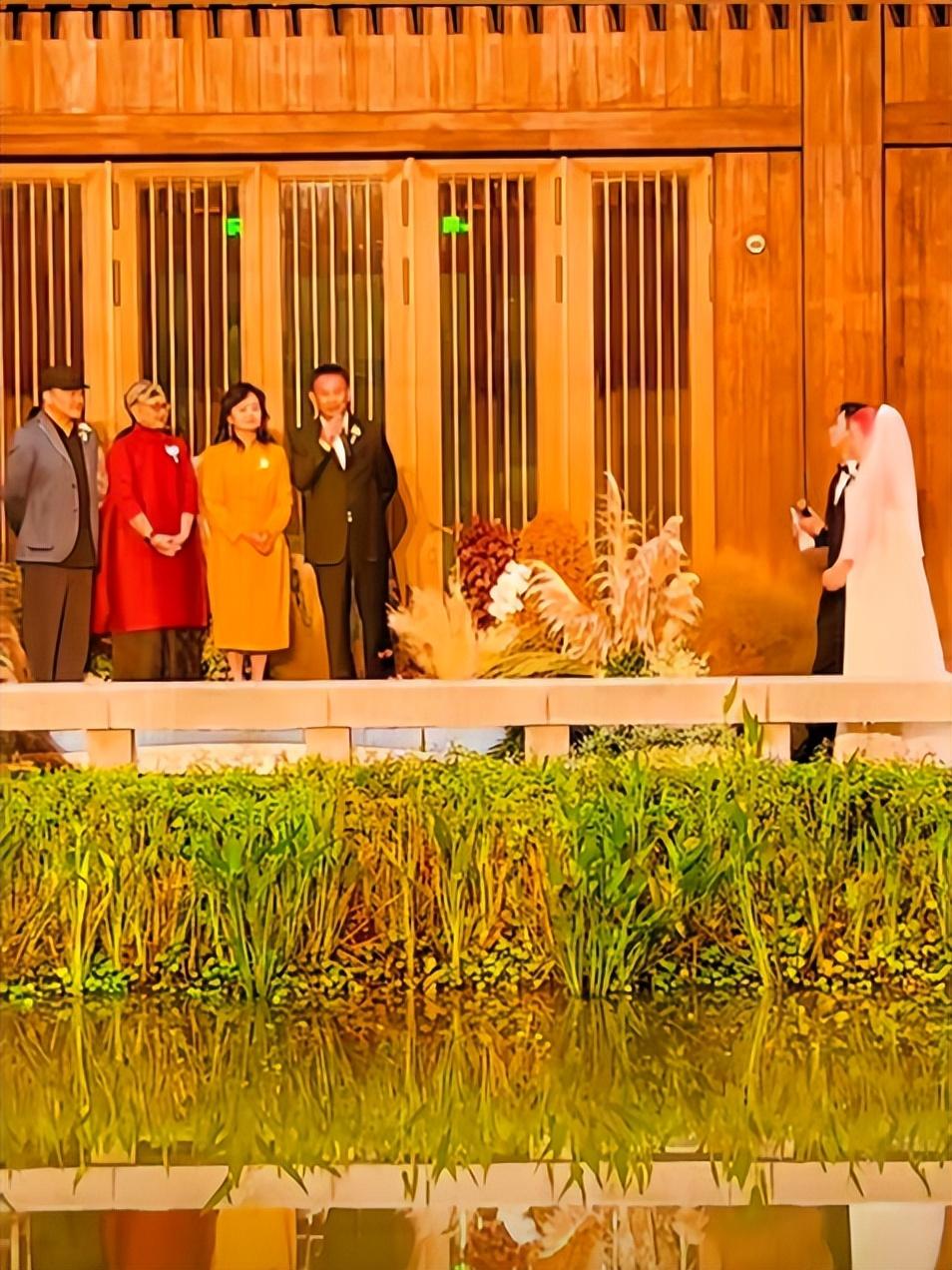 新郎的父親穿着白襯衫黑西裝,雖然已經是中年大叔,但顏值頗高。