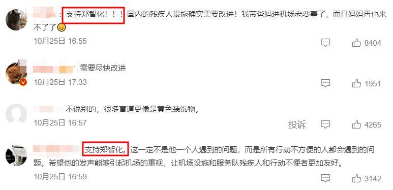 網友們認爲鄭智化指出內地機場在對待殘疾人旅客的服務上存在不足沒有問題,大家也不是在這個問題上吐槽他。