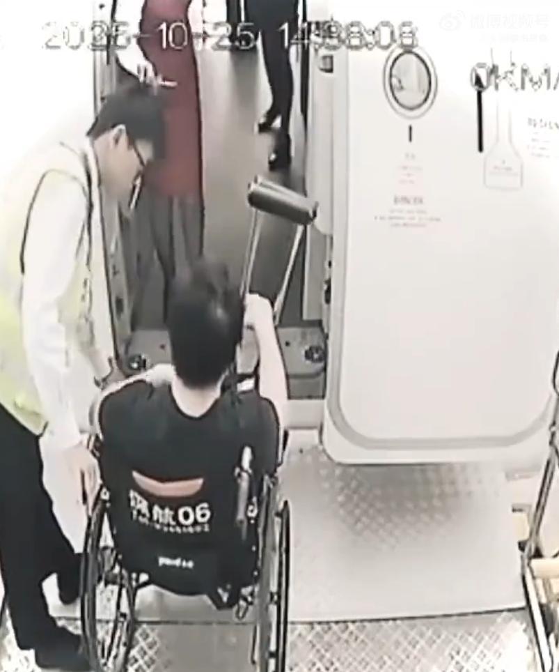 他說深圳機場的升降車停在離機門25公分的地方。正是這25公分的高度讓他難以進入機艙。